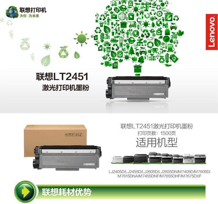 聯(lián)想/LENOVO LT2451粉盒 原裝粉盒 適用于M7400PRO 7605D打印機 約1500頁
