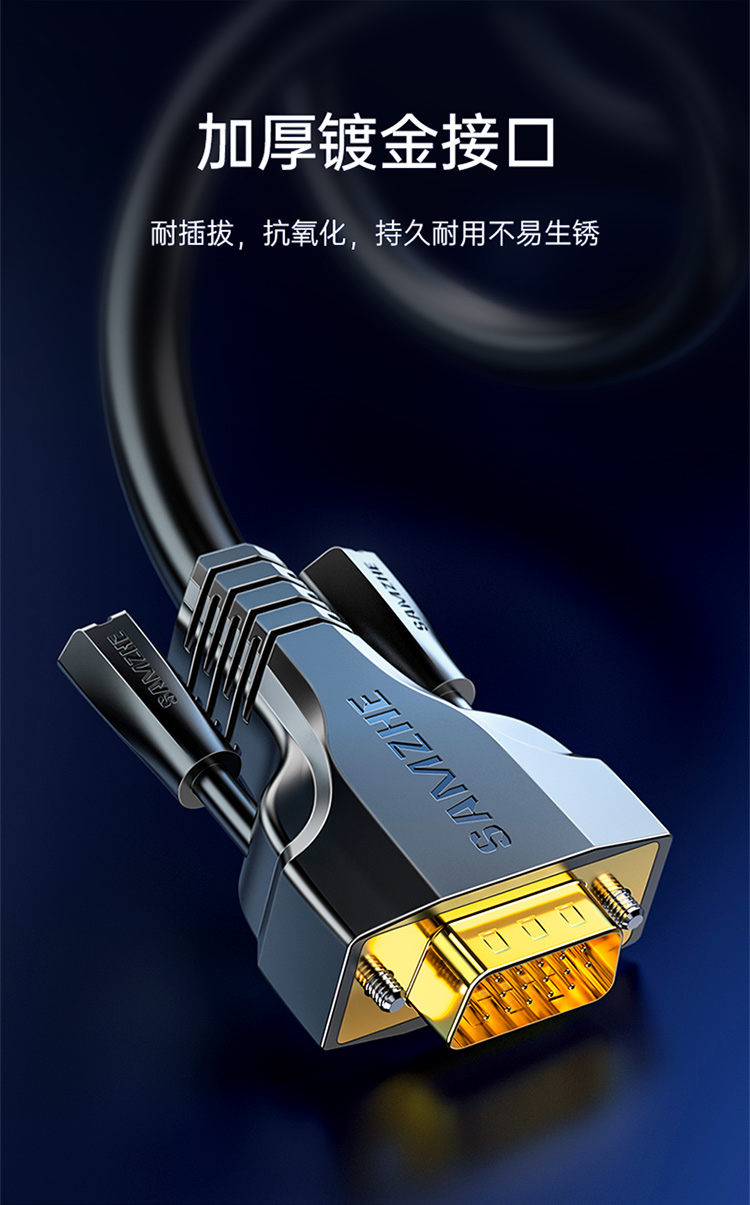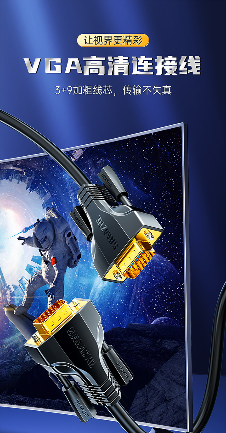 山澤 SAMZHE VGA線高清雙磁環(huán) vga3+9線芯針/針工程鍍金版 電腦投影儀顯示器視頻線數(shù)據(jù)信號線 1.5米 VM-9015