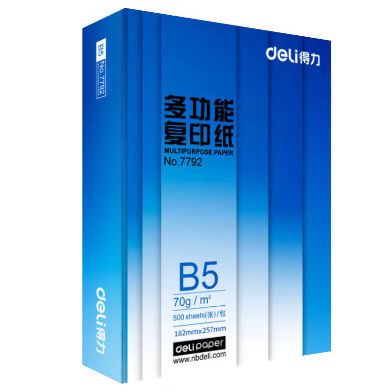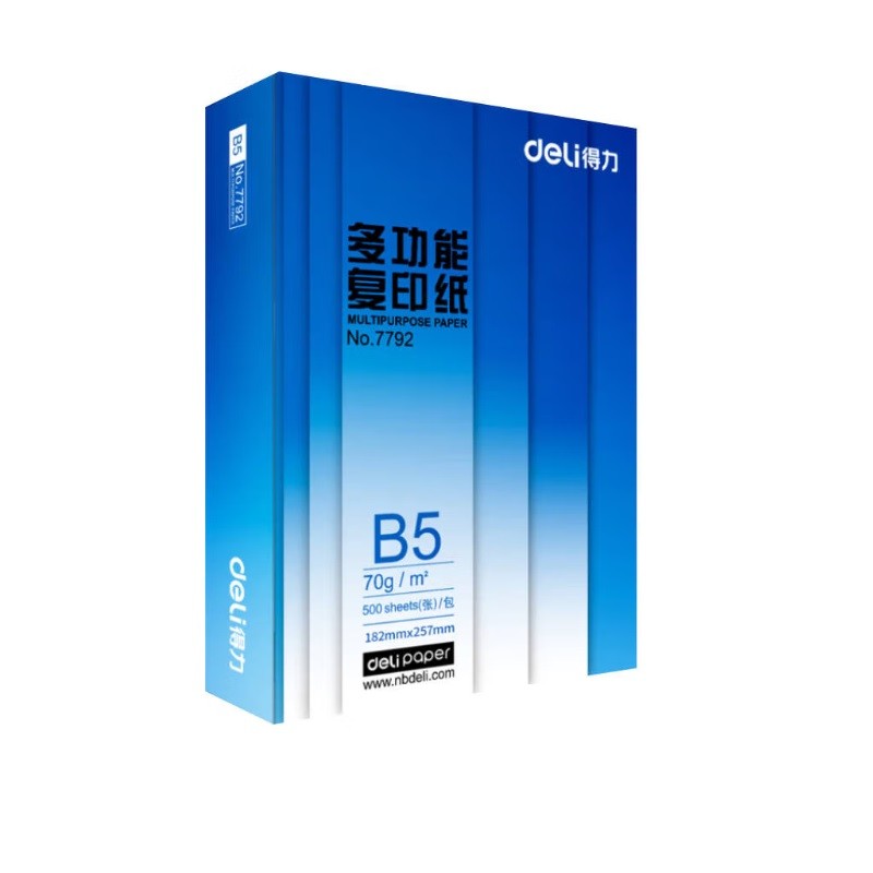 得力/deli 7793復(fù)印紙 B5-70g-8包/箱 白色 打印紙
