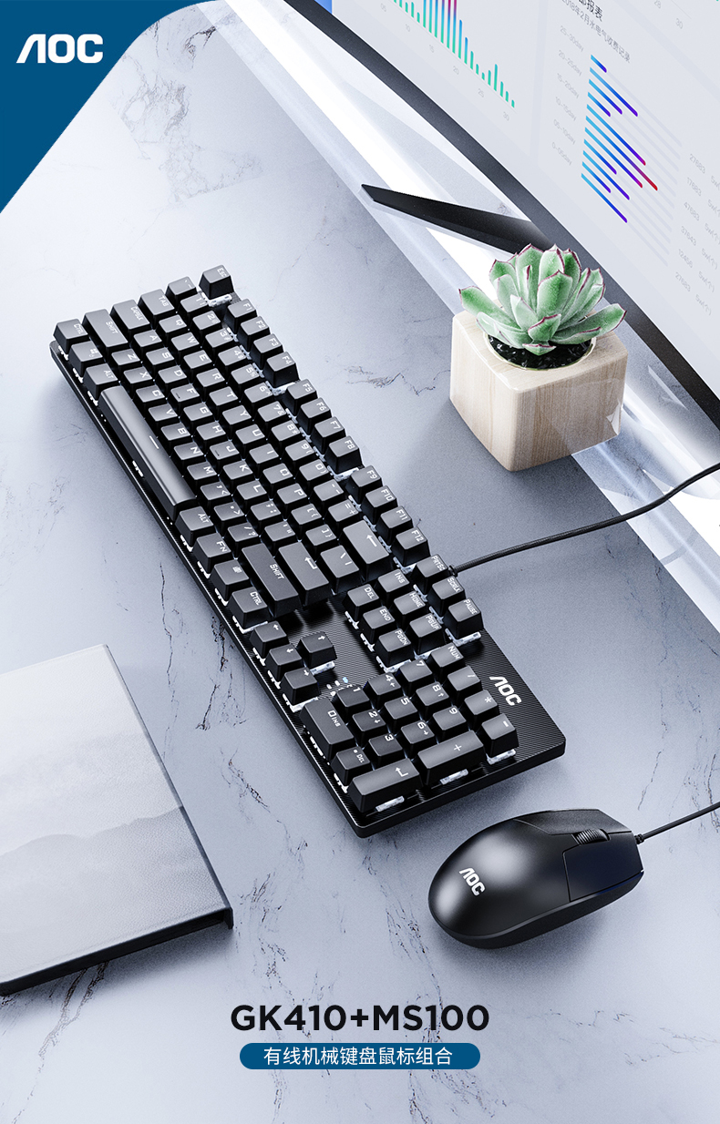 AOC GK410+MS100機械鍵盤鼠標套裝 有線鍵鼠套裝 游戲辦公 電腦筆記本鍵盤 全尺寸 黑色 青軸¥109.00